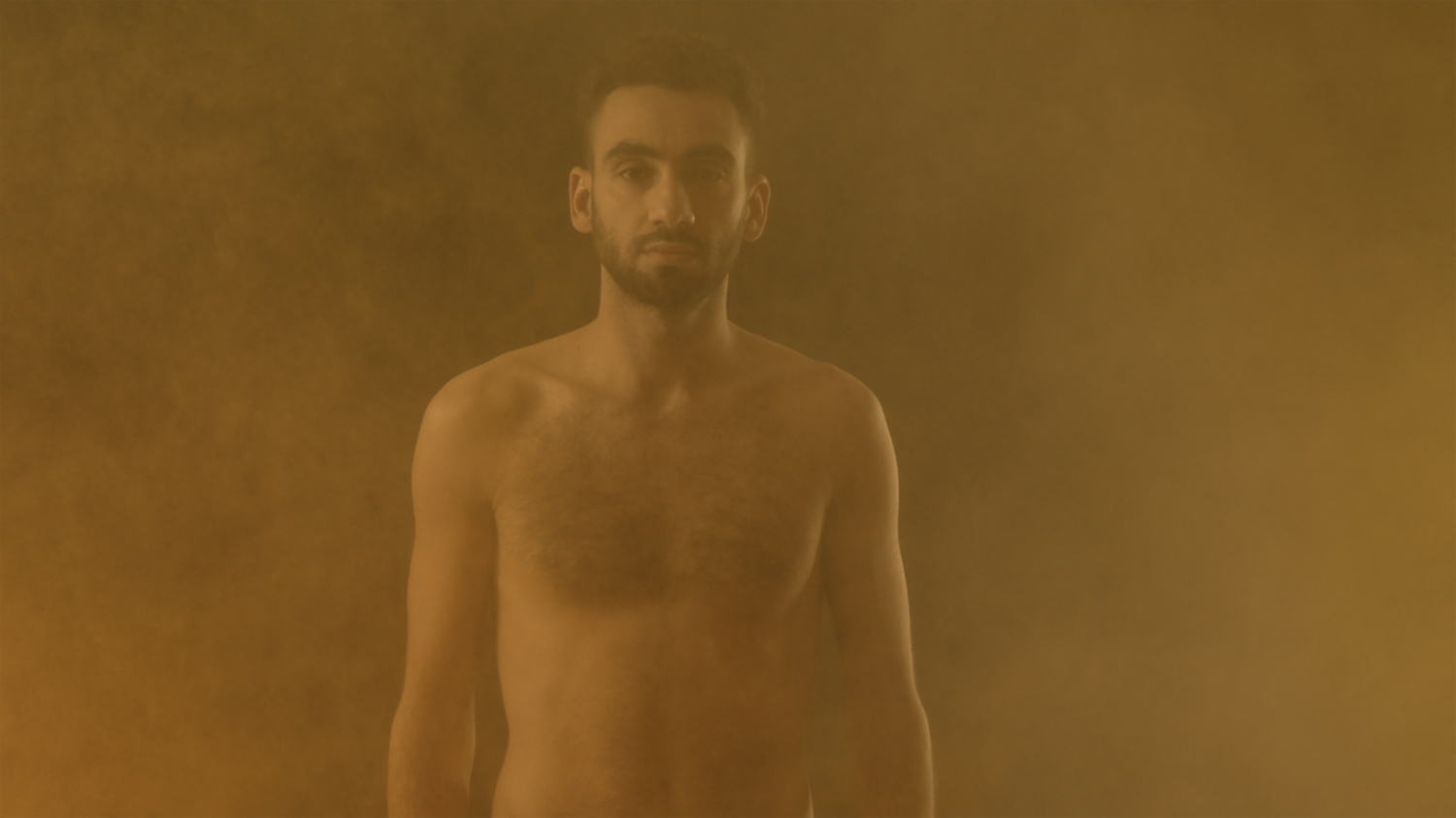 Mehdi-Georges Lahlou (1983, Sables d’Olonne, France ; vit et travaille à Bruxelles et Paris) est artiste multidisciplinaire et pratique ainsi aussi bien la performance que l’installation, la sculpture, la photographie etc. L’intérêt de l’artiste réside plus dans la manière dont les émotions vont pouvoir être déployées par la matière, que dans l’objet en lui-même. Il convoque le regard, le toucher, l’odorat (avec des épices), l’ouïe (avec des créations sonores), et jusqu’au goût qui est évoqué avec des aliments comme la semoule. Chaque élément fait référence à une culture, un cliché, une tradition rituelle, ouvrant ainsi à penser le monde.