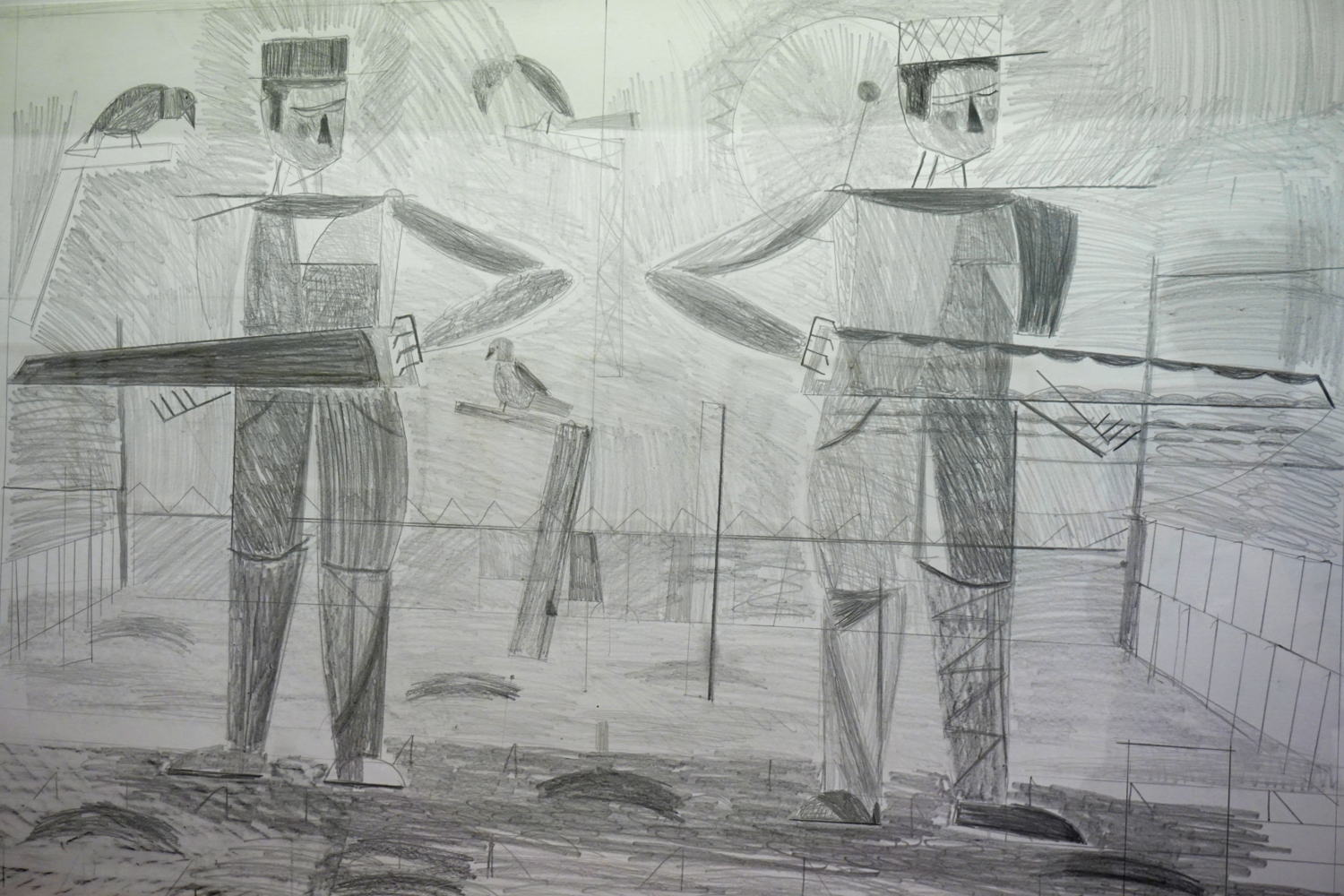 Kim Jones heeft in de afgelopen dertig jaar een consistent oeuvre opgebouwd, bestaande uit tekeningen, sculpturen, schilderijen, installaties en performances, waarbij vaak verschillende media worden gecombineerd. Jones blijft zijn werken vernieuwen door vormen en composities te wissen, toe te voegen, te veranderen en te muteren - vandaar de verschillende lagen en datums in zijn werken. Het is zijn manier om met de constante beweging van het leven om te gaan.