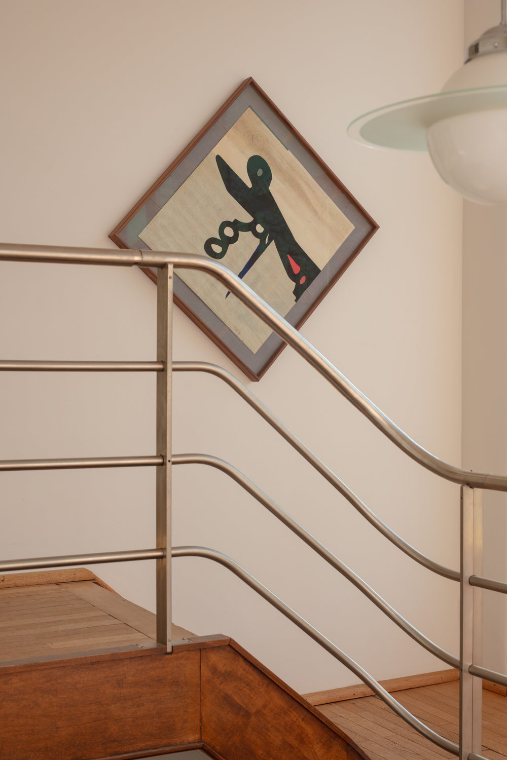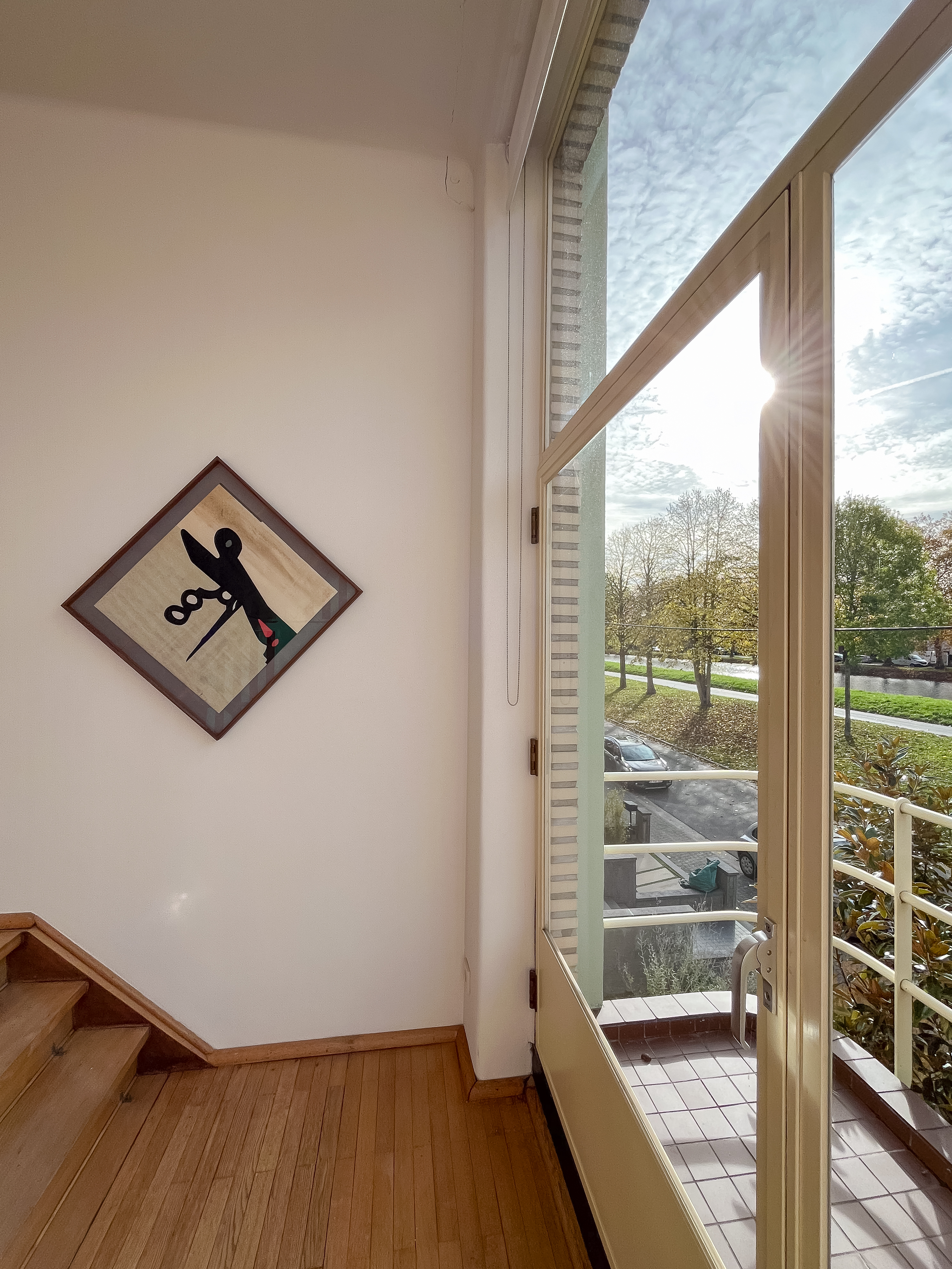 Zoek dus geen albatros in het werk, die staat al in dit Huis Cabuy dat architect Jos Chabot tekende en dat oprees aan de Mechelse Auwegemvaart. Deze villa, modernistisch, waar de zon doorluchtig zijn weg zoek via glas-in-lood, hoeken, muren en de trap met de gesculpteerde vogel, past uitstekend bij het werk van Jesse Willems. Huis en werk versterken elkaar omdat zijn fragmenten van de werkelijkheid, ooit vertrokken (en soms nog vertrekkend) van uitvergrote foto’s, baat hebben bij diezelfde zonneslagen. Wat het daglicht in het huis aan schaduwen schenkt, kan de basis zijn van nieuwe ideeën. Maar nu staan ze zij aan zij. De dialoog is vanzelfsprekend, maar het contrast met de albatros zelf is groot. Steeds verder weg vliegt die, recht door zee. ‘Ik cirkel veel meer rond’, zegt de kunstenaar. ‘Ik twijfel meer dan de vogel. Hij is vastberaden. Er is wel een grote liefde. Mijn opa was gids in Het Verdronken Land van Saeftinghe. Hij leerde me de vogels kennen.’
