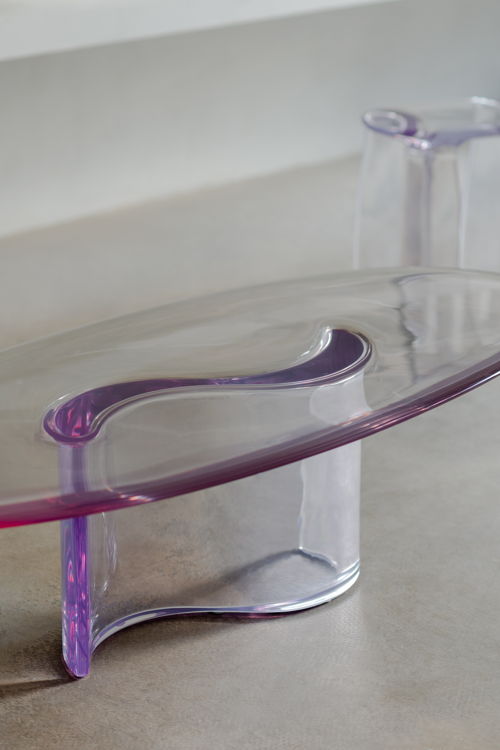 Pour cette exposition, Lukas Cober s’appuie sur la collection Kuro – ses débuts dans la collection de mobilier, reliant les formes rurales sculptées à main levée et les lignes graphiques, en réponse à sa quête de pureté dans la forme et la matérialité ; et sa deuxième collection New Wave, où il réalise des pièces sculpturales en superposant à la main de multiples couches de fibre de verre avec de la résine pour obtenir les formes désirées.