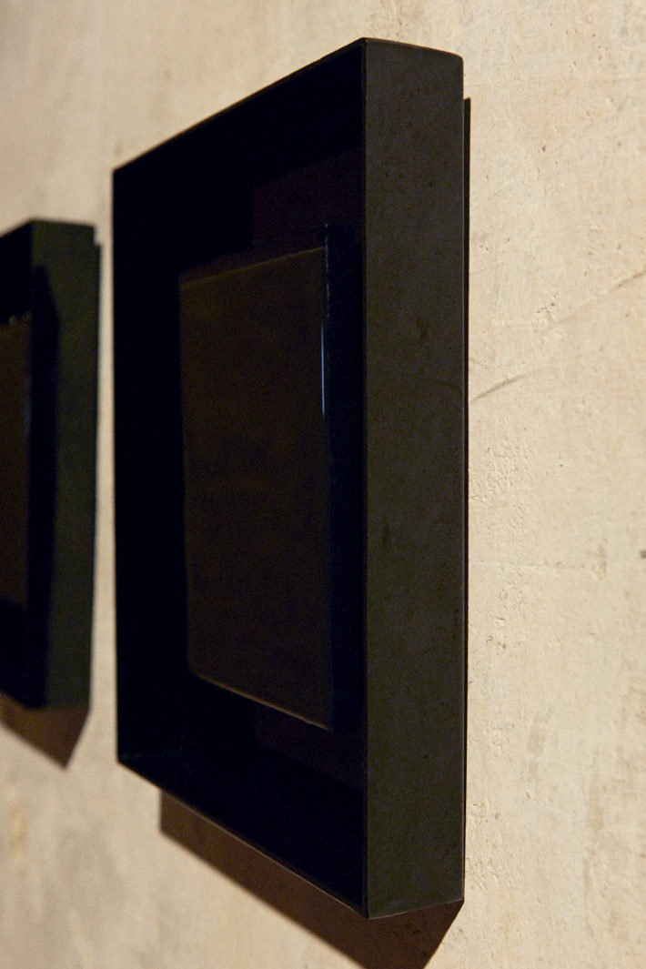 The process of judgement is further complicated here because each can only be viewed from a right angle, fading to black if seen from any other perspective. As an arrangement the series is an inverse panopticon, obscured in a way that underlines the fugitive nature in which choices often present themselves.