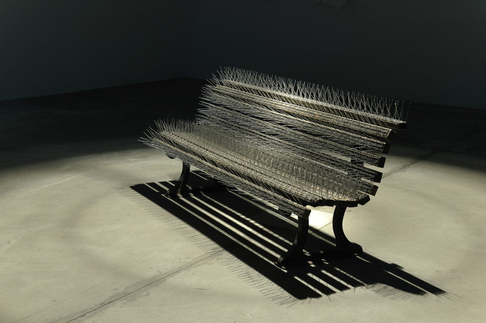 - Nadia Kaabi-Linke (TN/UA/DE) brengt een cirkelvormige installatie van publieke banken die aantrekkelijk blinken maar door scherpe pinnen niet toegankelijk zijn. De sculptuur ‘Inner Circle’ verwijst naar het eivormige grondplan van de stad en haar vroegere omwalling, maar evengoed naar familiale structuren, werksituaties of exclusieve clubs en geprivilegieerde gemeenschappen die vaak een cirkelvorm gebruiken in hun logo.